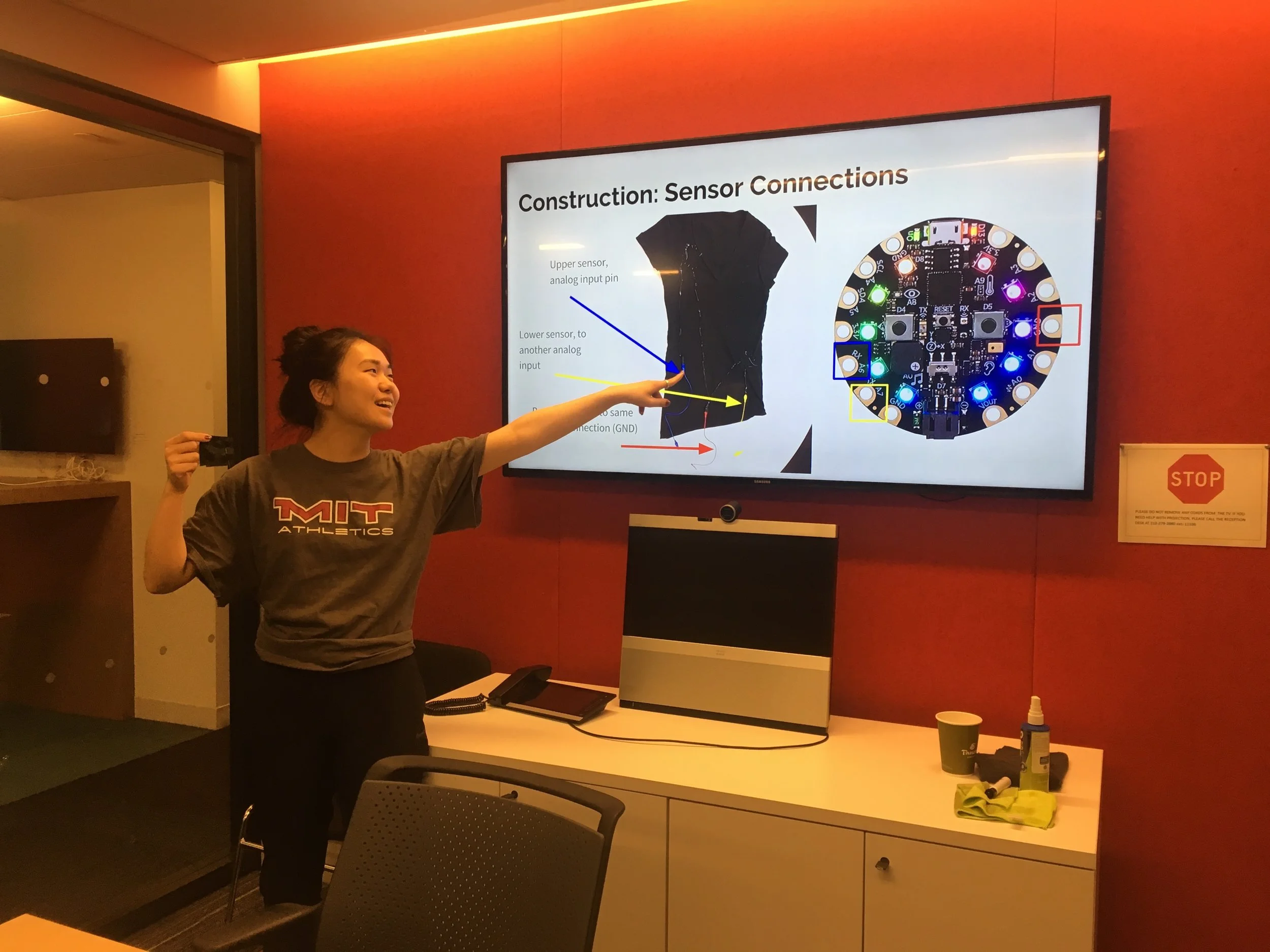 Presenting my shirt to STEM From Dance instructors, explaining how its construction and technology could be taught to future students.